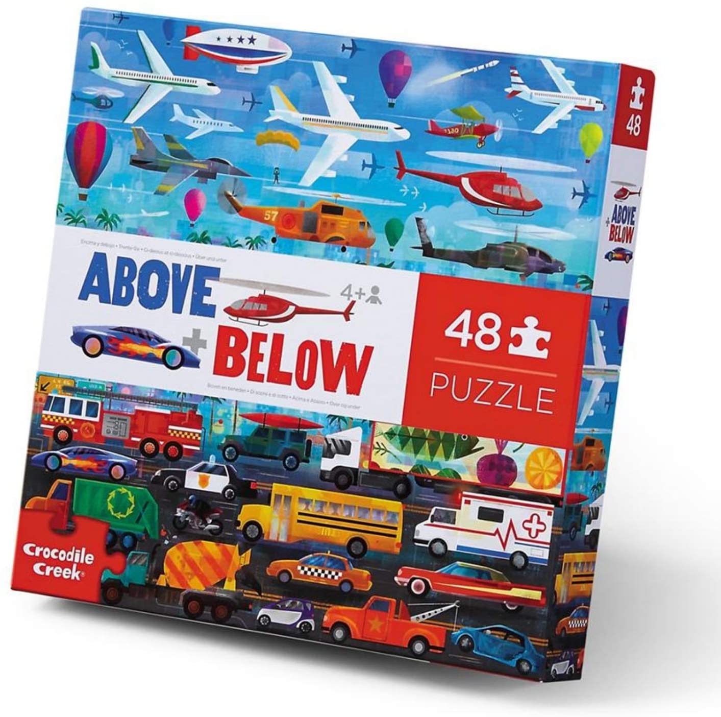 This puzzle is a fun way to teach opposites! What's above? What's below? Children will learn observation and deduction skills as well as practicing dexterity. 48 piece puzzle features thick pieces that hold up to repeated use; once assembled, kids will enjoy poring over the image trying to find every vehicle on land and in the sky.