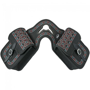 Durable 1200 denier weather-resistant poly outer shell with thick neoprene lining. Fun embroidered design adorns the flaps and border of entire bag. A great bag when out on the trail to keep your essentials close at hand. Two - 6” x 7” pockets with 2½” gussets close securely with adjustable buckle.