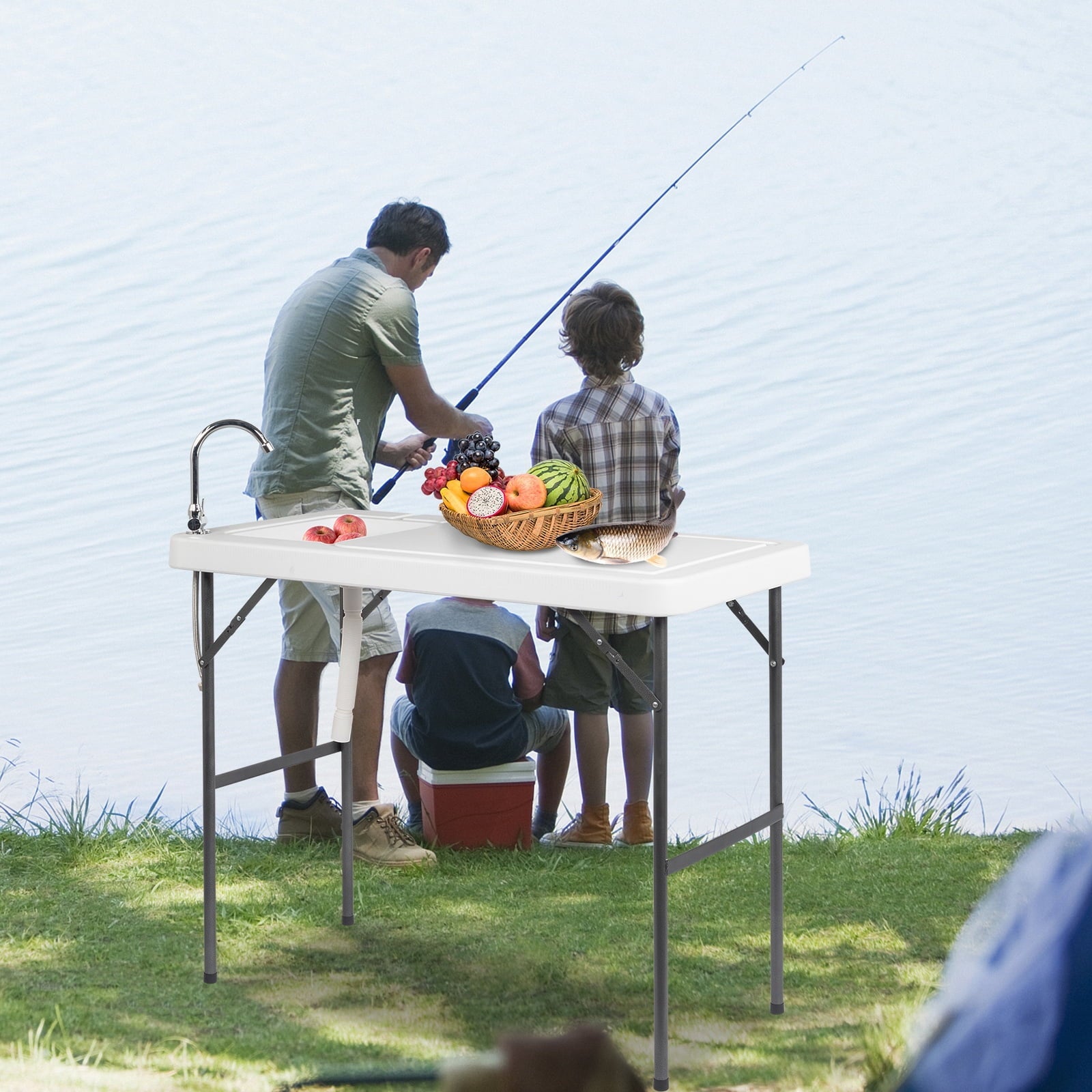 Ktaxon Folding Fish Table Fillet Cleaning Cutting with Sink Faucet White Plastic