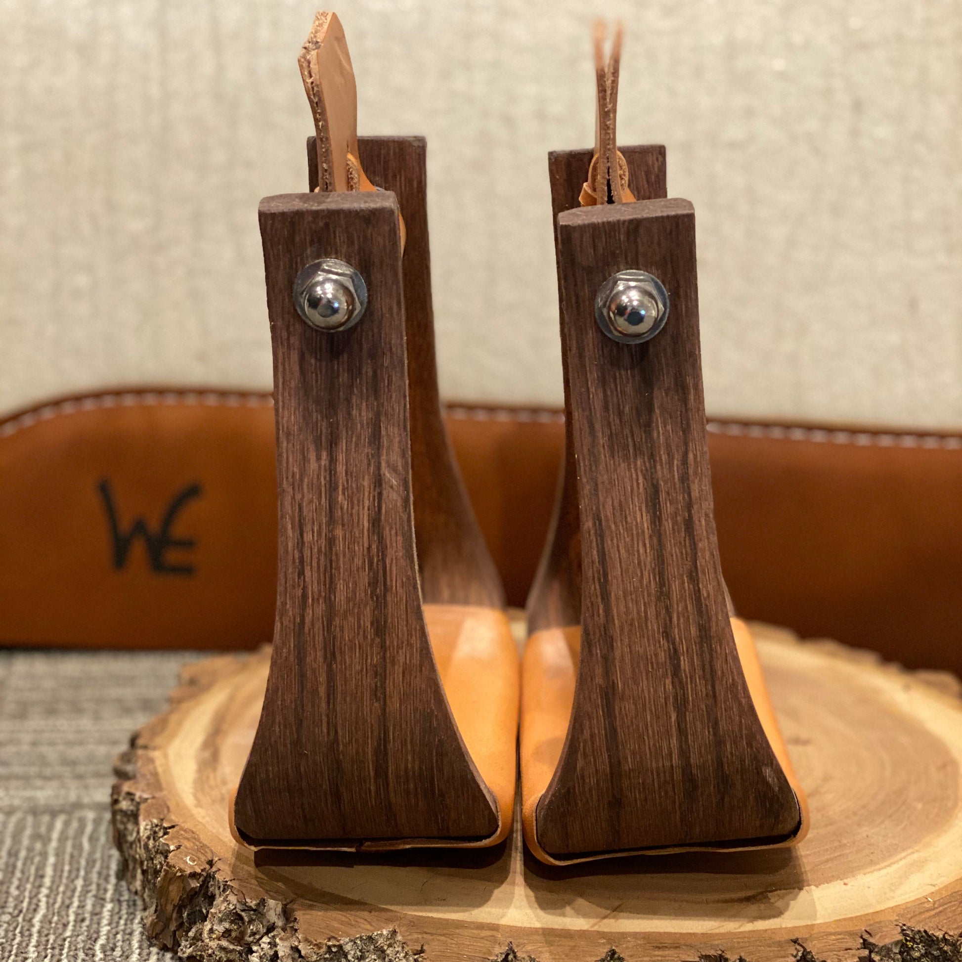 Meet the Duke, aptly named after John Wayne and the best-looking, best-riding, best-built economy stirrup on the market. A sidekick to the Nettles Stirrups Premier Line, it too was designed by cutting horse Hall of Fame trainer and problem-solving guru Ronnie Nettles. Made of five oak laminates from logs milled at the Nettles Stirrups Manufacturing Company, The Duke is a great basic work stirrup. It is graded at five stations during the building process, has rounded inside edges and is finished in a Rustic Cherry stain that blends smartly with today's saddles. The Duke's excellent stability and smart style makes it the best value in economy stirrups on the market.