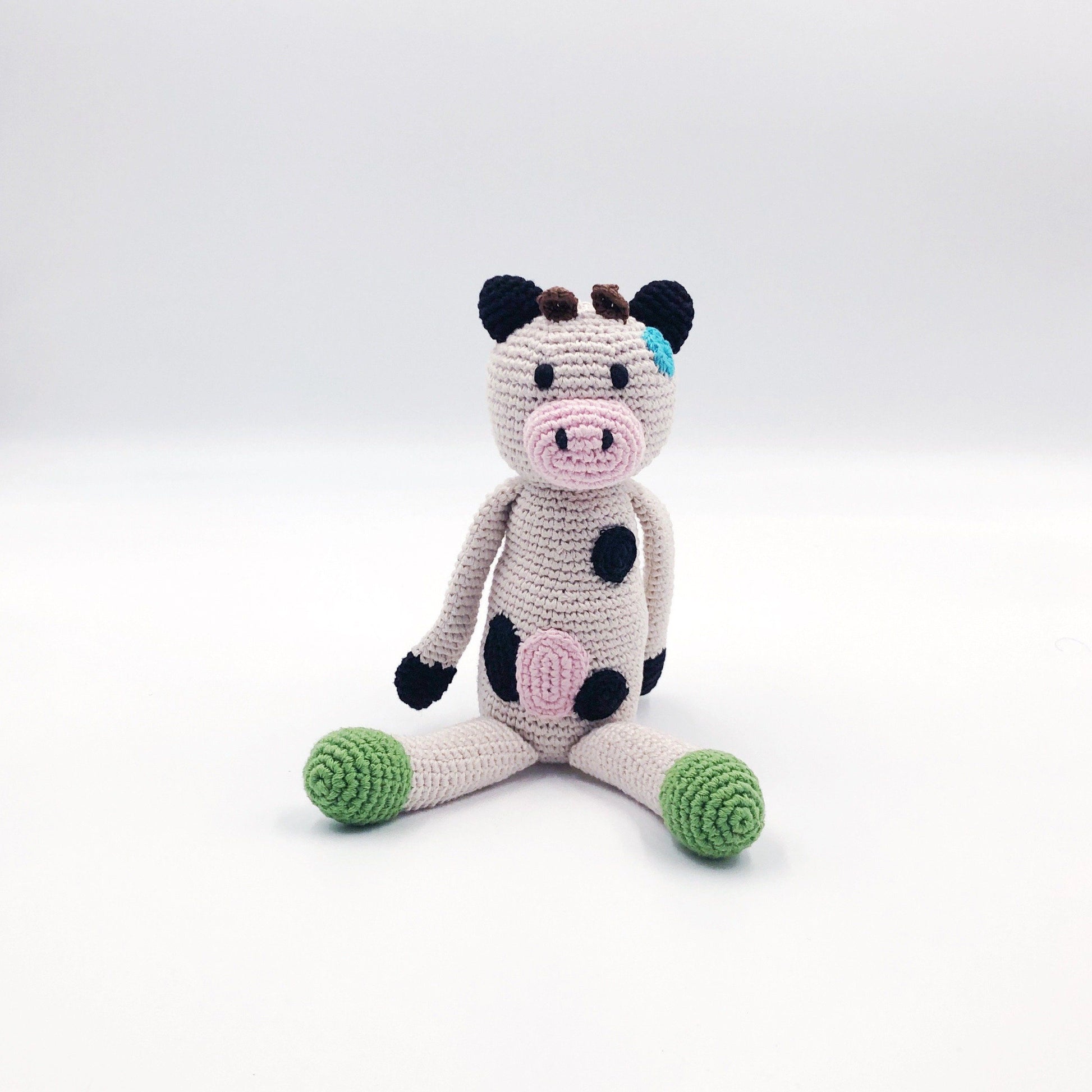 These cow plushes are handcrafted with care using organic cotton, making them safe for play. They're soft in your baby's hands and entertain while developing motor and cognitive skills.