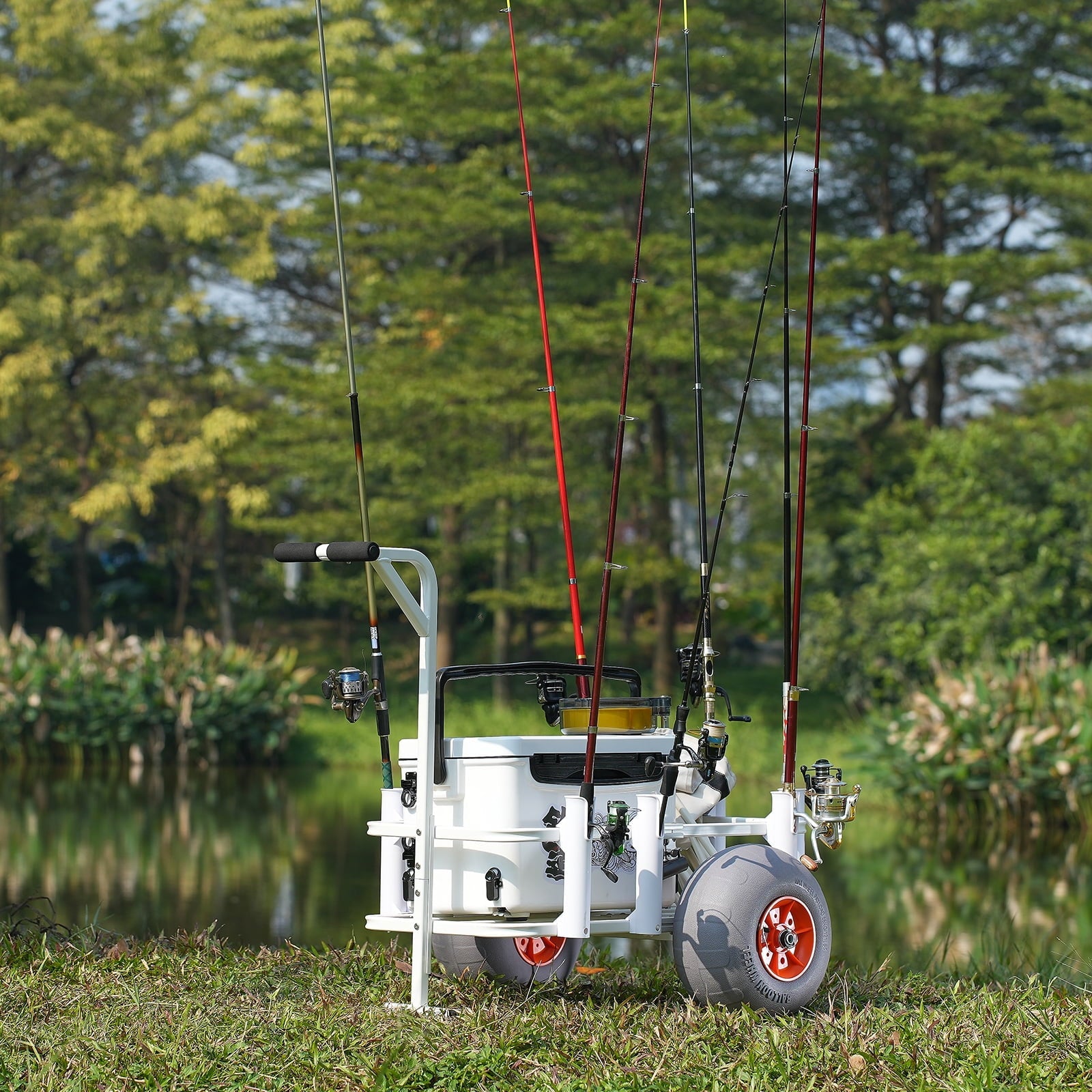 - Multifunctional & Portable: Equipped with 8 rod holders and a portable rod-insertion design, this pier cart is a game-changer for anglers. The 2-inch diameter holders accommodate various fishing rods. It's all about convenience: grab a rod, cast it, and you're fishing in no time.