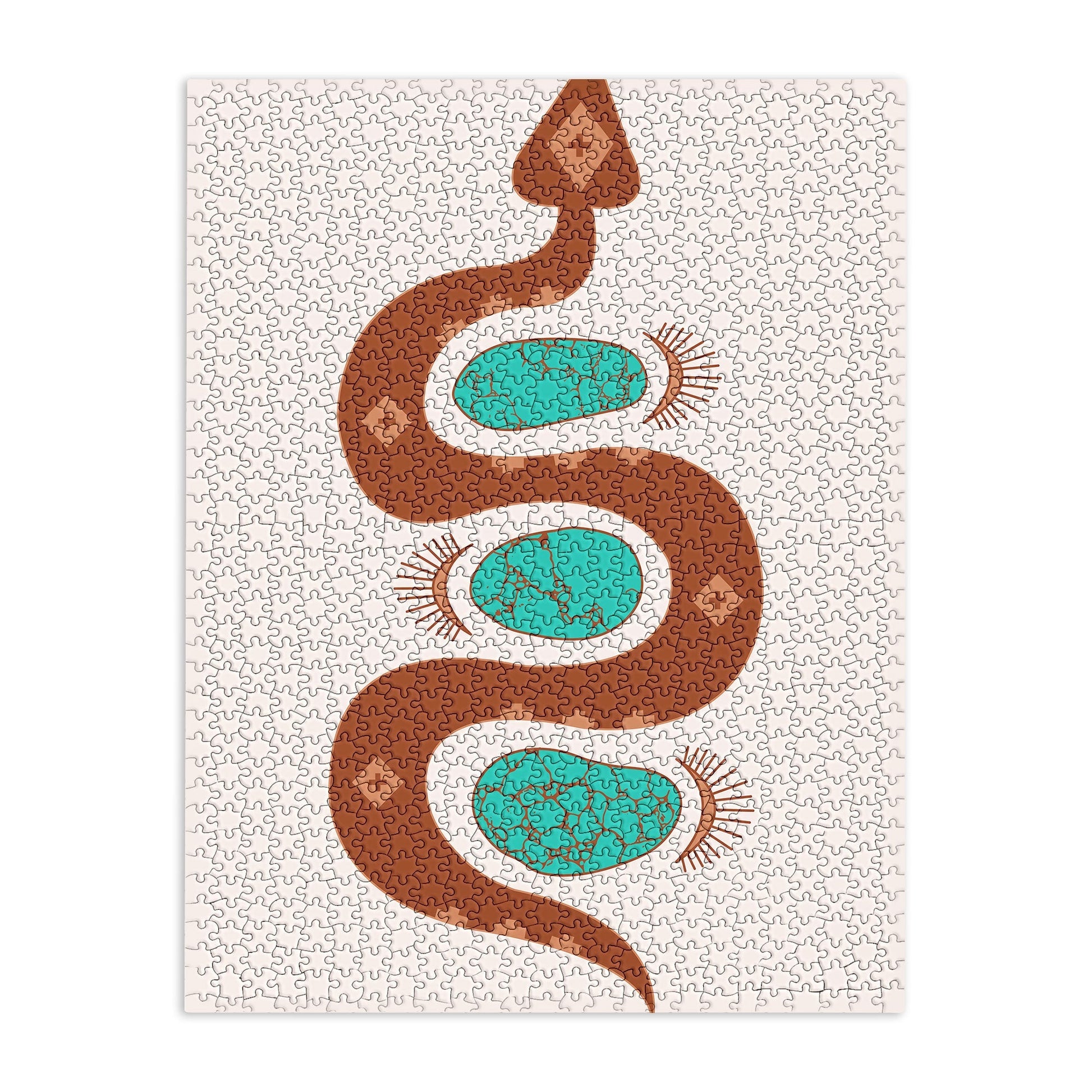 Our Southwestern Slither Jigsaw Puzzle transforms your favorite artists' designs into endless tabletop fun. Each unique puzzle piece is crafted with a precision cutting technique to ensure a perfect interlocking fit. Printed on thick, class-leading paperboard, our puzzles feature an anti-glare satin finish for superior color brilliance and durability. Each puzzle includes a custom printed box featuring the artwork of the completed puzzle. Available in 200, 500 and 1,000 pieces to match whatever your skill level may be. And the best part? Every purchase pays the artist who designed it—supporting creativity worldwide.