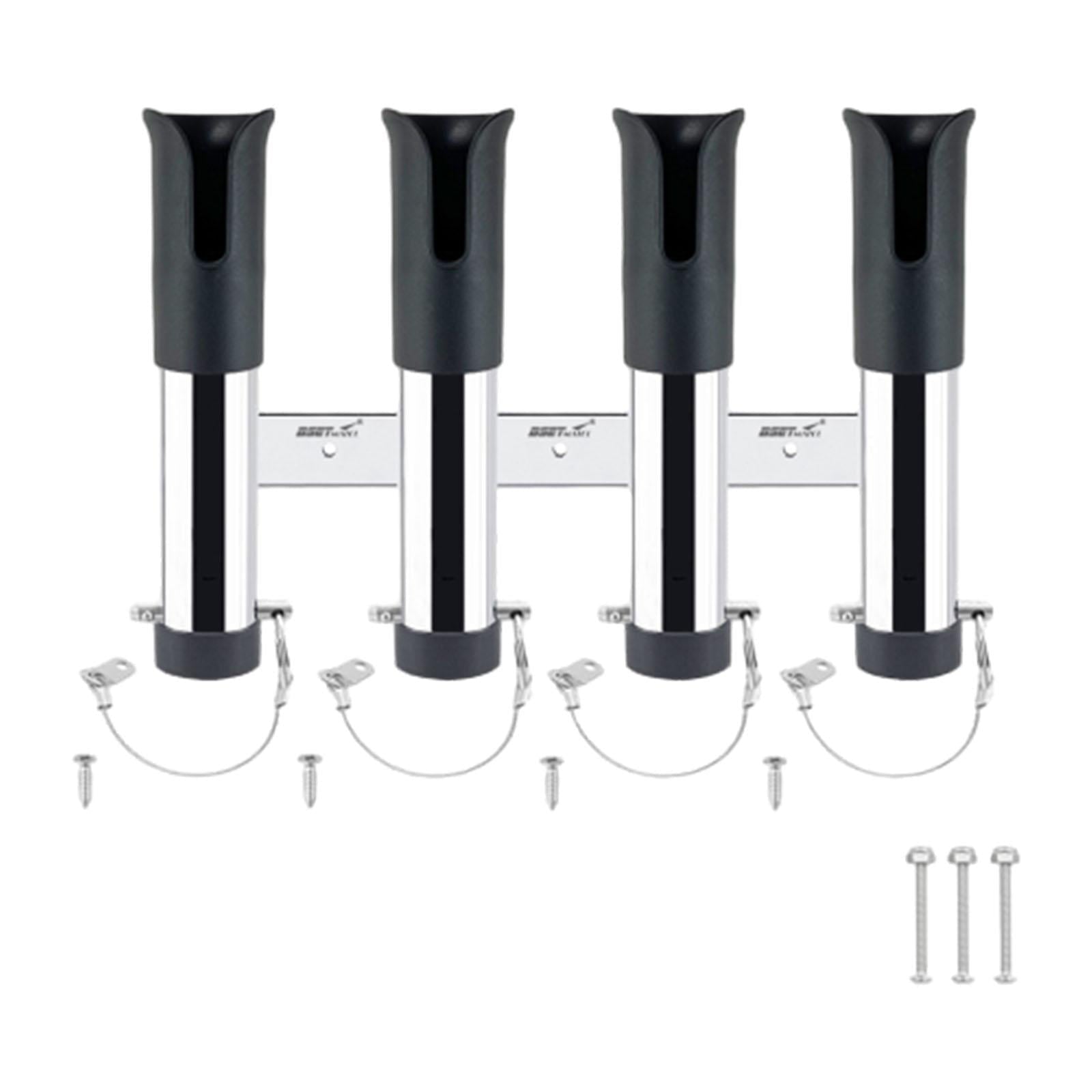 SunniMix Fishing Rod Holder Heavy Duty 4 Tubes Organizer Links for Truck Garage Canoe black.This Stainless Steel Four Hole Fishing Rod Holder is made from Propene Polymer and Stainless Steel 304, ensuring high durability and environmental friendliness. It's designed to withstand both freshwater and saltwater use.Our fishing rod holder is designed to protect your favorite rods from damage during transport or storage. It features a slotted design that locks in most fishing reels securely.for situations where flush mount or mount rod holders cannot be installed, this holder mounts directly on your boat, truck, or wall for easy access and convenience.The holder includes a 6.3mm pin inside the tube that can be removed when not in use, adding to its versatility and user friendly design.Each package comes with 1pcs Four Hole Fishing Rod Holder measuring 43cmx27.5cmx5cm/16.93inchx10.83inchx1.97inch, along with four stainless steel hardware screws and nuts for easy installation.304 Stainless Steel Fishing Rod Holder for Boat. Wall Mounted 4 Tubes Linked Fishing Rod Rack. Vertical Fishing Pole Holder for Marine Yacht. Pole Tube Barrel Rod Stand Accessories. Fishing Gear Support Bracket for Garage RV.