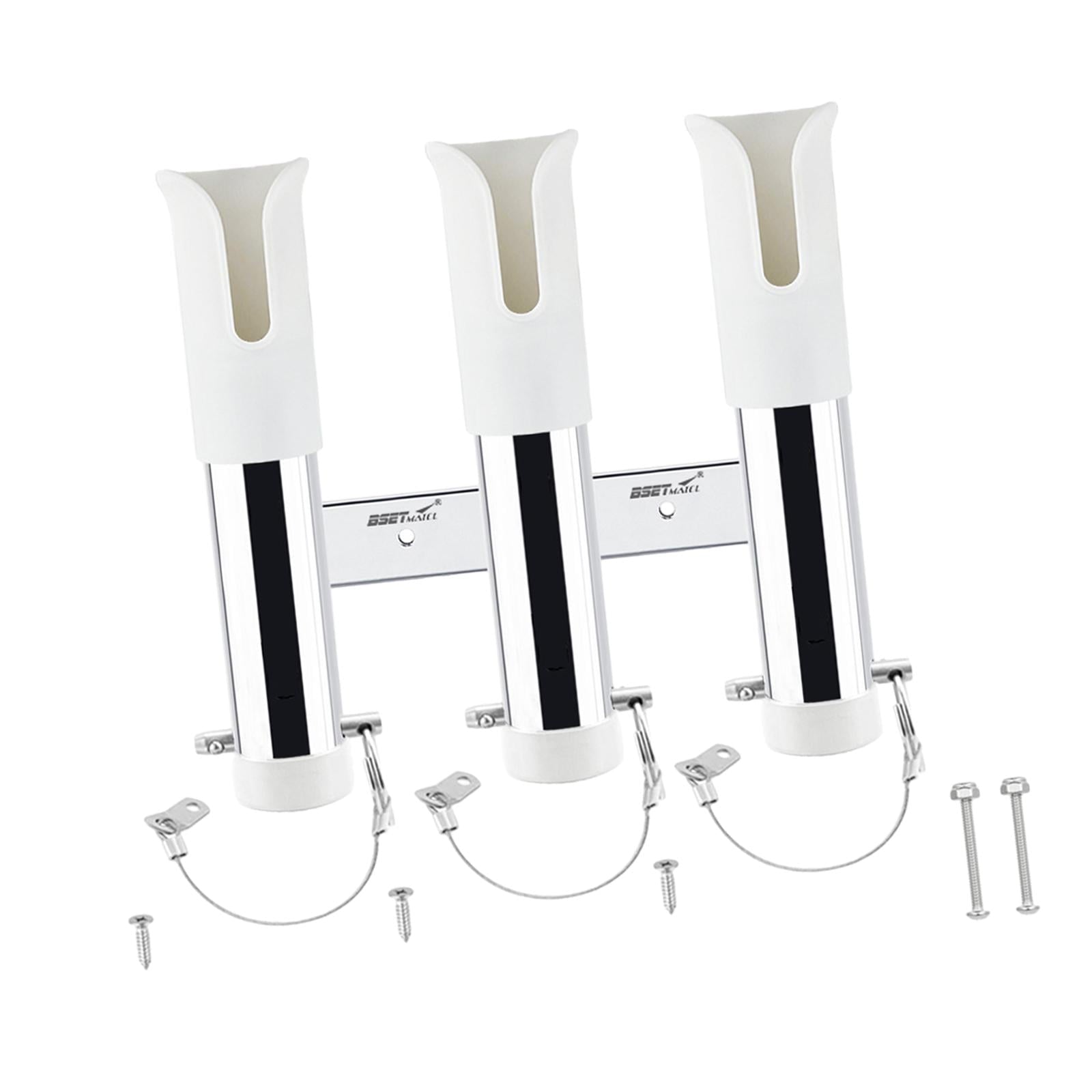 SunniMix Fishing Rod Holders Accessories Fishing Rod Rack for s Garage Boat White.This Fishing Rod Holder is made from Stainless Steel material, ensuring high durability and environmental friendliness. It's designed to withstand both freshwater and saltwater use, making it a versatile addition to your fishing gear.Our Fishing Rod Rack is designed to protect your favorite rods from damage during transport or storage. The slotted rod holders are specifically designed to lock in most fishing reels, providing extra security for your equipment.This Fishing Pole Holder is excellent for situations where flush mount or rail mounts rod holders cannot be installed. It mounts directly on your boat, truck, or wall with included Stainless Steel Hardware screws and nuts, making the installation process straightforward.The Rack Rest features a 0.25inch Pin inside of the tube that can be removed when not in use for added convenience. Its compact size (10.83inchx11.81inchx1.97inch) makes it easy to carry around while not compromising its functionality.This Fishing Rod Rack Holder makes an excellent gift for men, colleagues, friends, boyfriends, Dads, or somebody who loves fishing.Stainless Steel Fishing Rod Holder Rod Rack. Fishing Pole Holder Durable Marine Equipment. Triple Hole Fishing Pole Stand Protective Gift. Stainless Rail Mounts Clamp on Rod Holder. Motorboat Fishing Accessories Easy Installation.