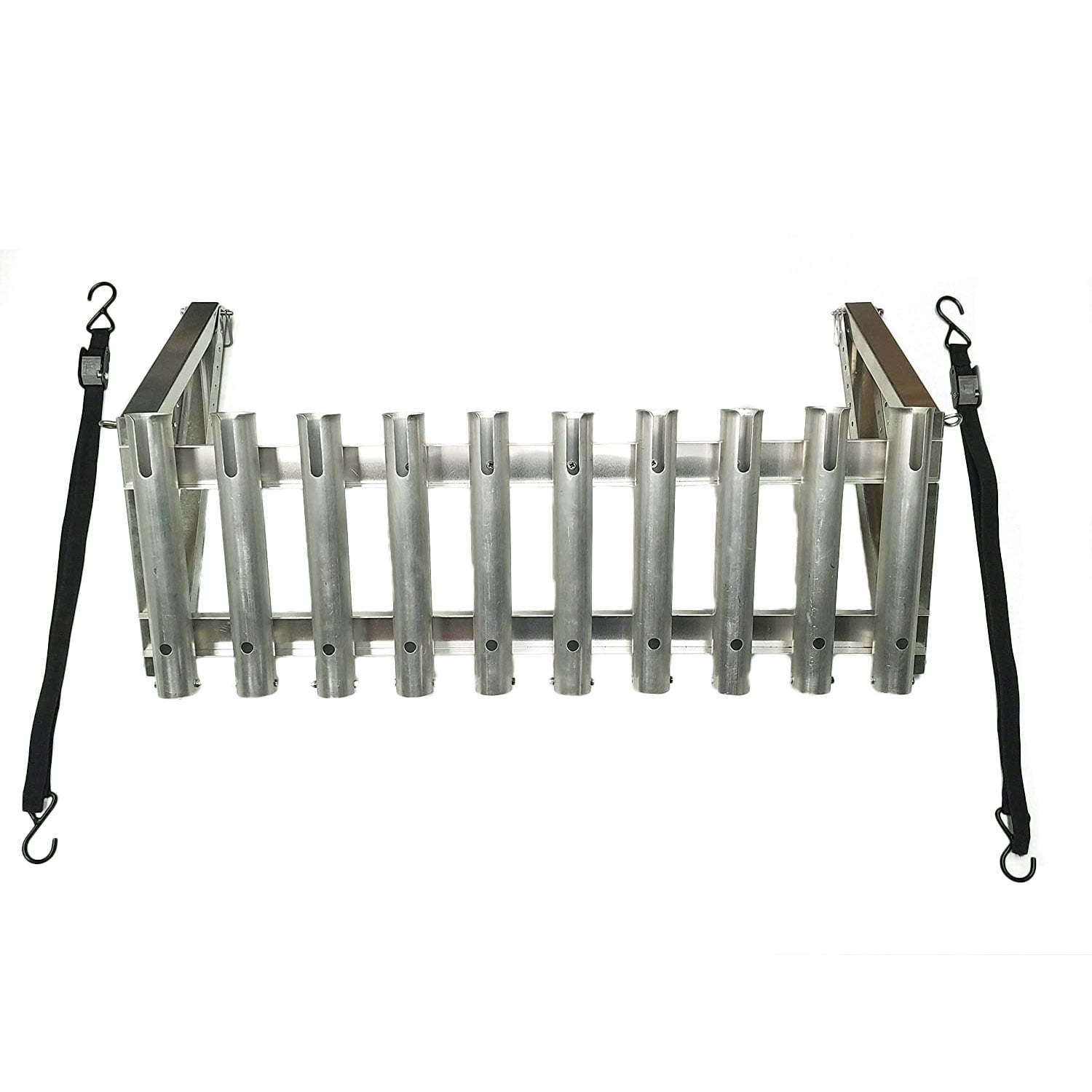 Keep your rod and reels organized with the Viking Solutions Wall-Mounted Fishing Rod Storage Rack. This wall-mounted rack features a durable all-aluminum/stainless steel construction that is resistant to rust and will last you many fishing seasons to come. The simple design of this storage rack is quick and easy to assemble and is great for storing in your home or in your vehicle. When used in your vehicle, you'll never have to worry about your rods getting tangled or danged during the drive. Lock the rack to your truck bed using the included cinch strap. The best part of this rack is its capacity, it can fit up to 10 fishing rods and reels and is adjustable so it can accommodate most rod sizes. When you're ready to call it a day after long hours of fishing on the lake, store your fishing rods in the Viking Solutions Wall-Mounted Fishing Rod Rack.